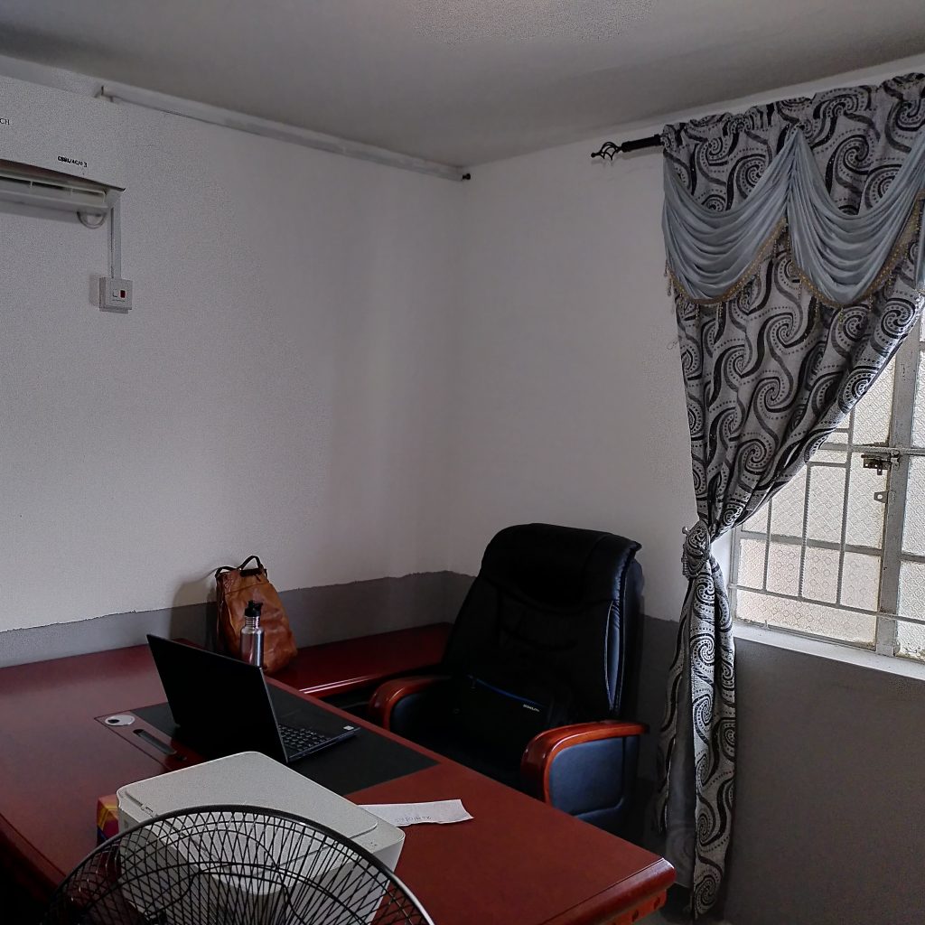 Am ersten Arbeitstag kam gleich die nächsten Lektion in “small, small”. Ich wurde erst von Sheku allen anwesenden Kolleginnen und Kollegen kurz vorgestellt. Dann wurde ich in mein Büro geführt mit der Information, dass ich mich jetzt erst einmal einrichten kann. Gesagt, getan. Ich habe meinen Laptop auf den Schreibtisch gestellt und war eingerichtet. Das war circa um 9:22h…
