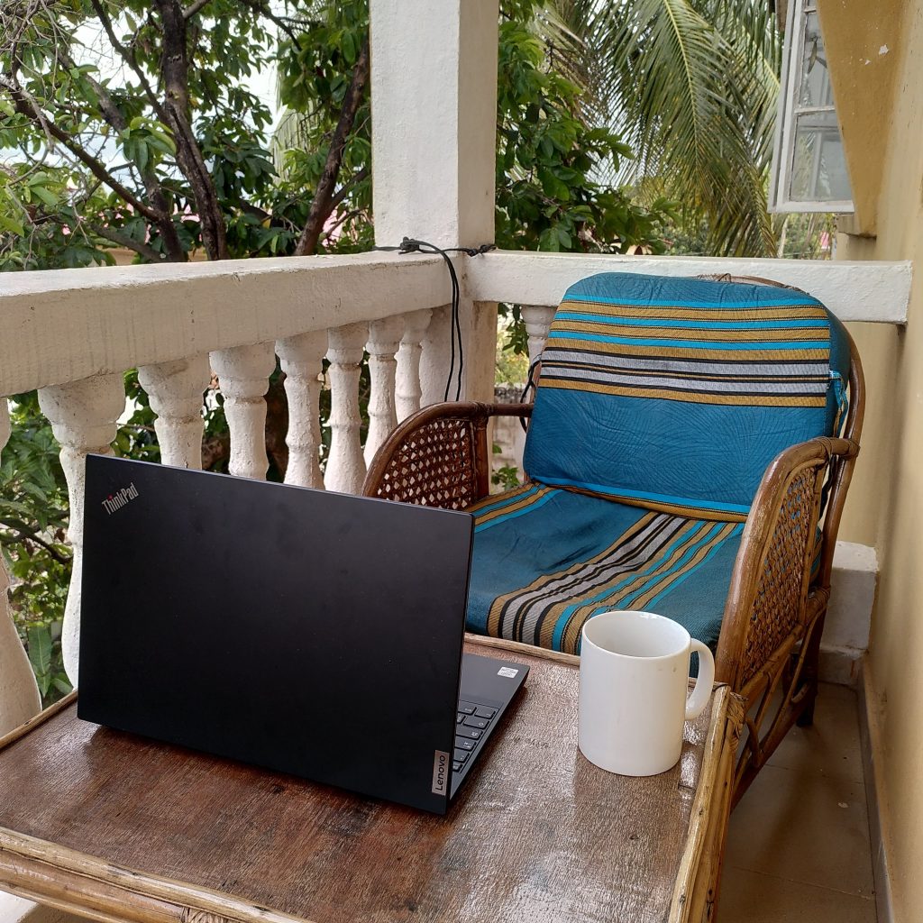 Nach Hotelquarantäne und Abwesenheit des für mich wichtigen Kollegen, kommt nun also eine neue Quarantäne mit eingeschränkten Internet und Strom hinzu. Alles in allem werde ich zur Entschleunigung gezwungen und habe nun viel Zeit von meinem Balkon aus in die Hügel zu blicken und auf neue Instruktionen aus dem Büro zu warten. Mein Homeoffice habe ich schon eingerichtet 🙂