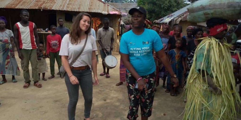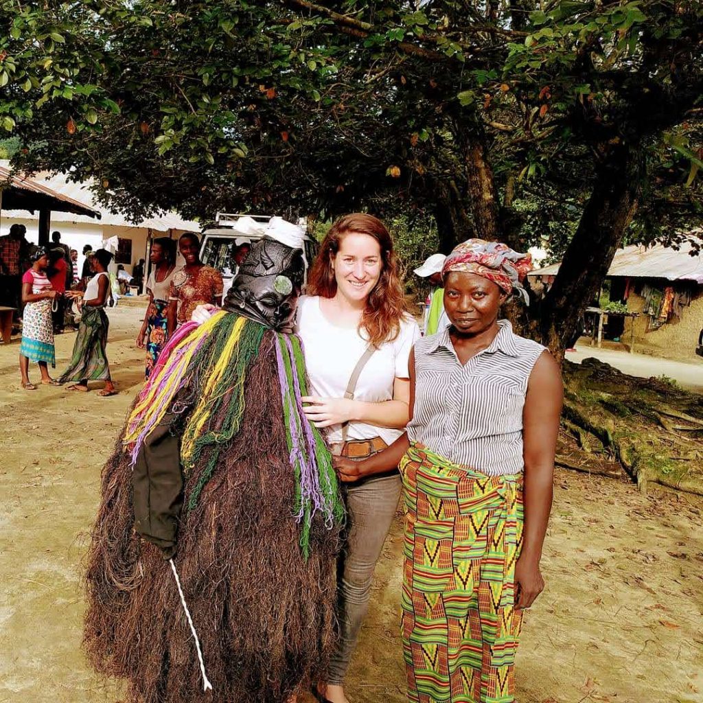 In einem Dorf kamen zwei Teufel der Geheimgesellschaft der Männer. Der eine war wirklich furchteinflößend. Das war der „echte“ Teufel. Er wurde von vier Männern begleitet, die anscheinend dafür da waren, ihn etwas in Zaum zu halten. Kinder und Frauen sind geflüchtet und haben sich versteckt und meine eine Kollegin hat sich in den Wagen gerettet. Normalerweise kommt er nur für besondere Anlässe und dann verstecken sich alle, die nicht Teil der Geheimgesellschaft sind. Es war wirklich komisch, aber die Stimmung hatte sich auf einmal verändert und ich hatte auch ein mulmiges Gefühl. Mir wurde gesagt, ich soll auf nichts reagieren was sie sagen und machen und einfach stillsitzen bleiben. Der eine Kollege hat immer versucht sich wie eine schützende Mauer zwischen mich und diesen Teufel zu stellen. Ich habe mich auch nicht getraut ein Foto oder ein Video zu machen.