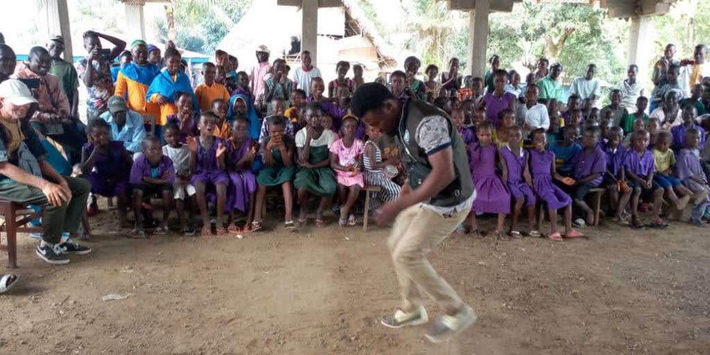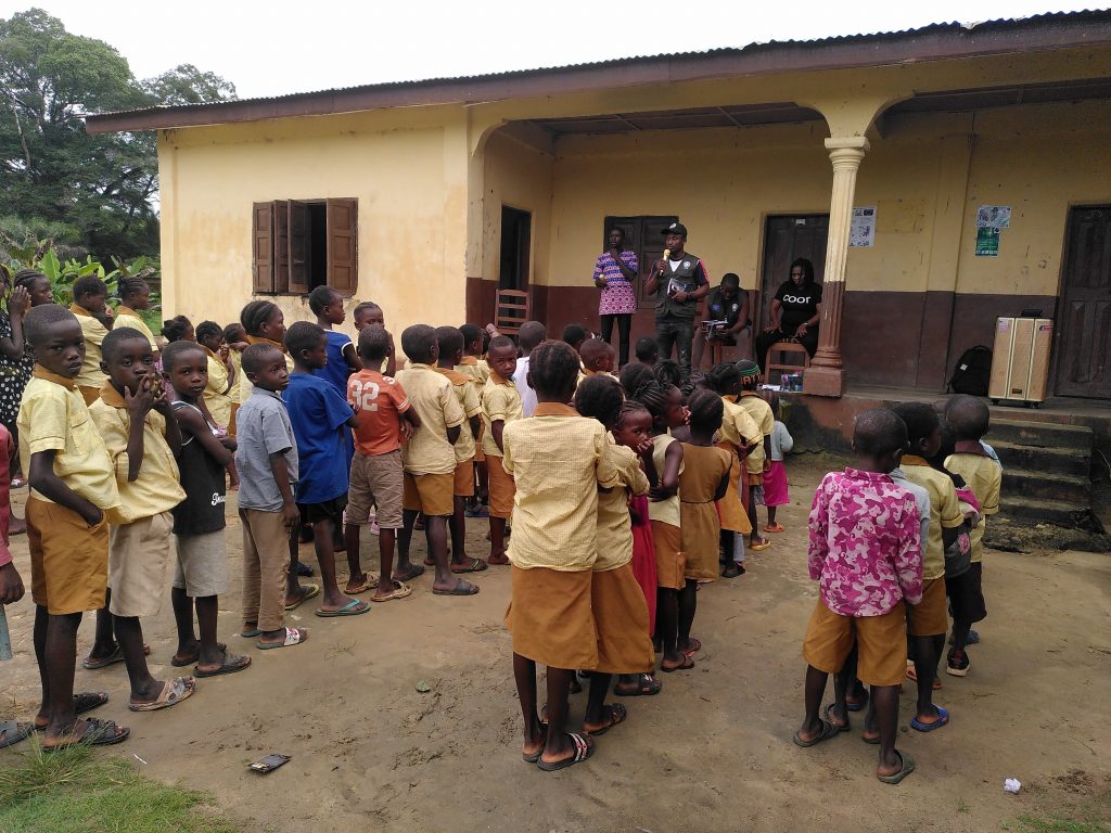 Vor zwei/drei Wochen war ich spontan für eine Woche in den Dörfern im Greater Gola Landscape unterwegs auf einer sogenannten Roadshow. Die Roadshows haben ihren Namen zurecht. Es ist eine Kombination aus Zeit auf der Straße und Showeinlagen. Wir nutzen diese Roadshows in verschiedenen Projekten zur Aufklärungsarbeit und Beziehungsarbeit mit den Menschen in den Dörfern rund um den Nationalpark.
