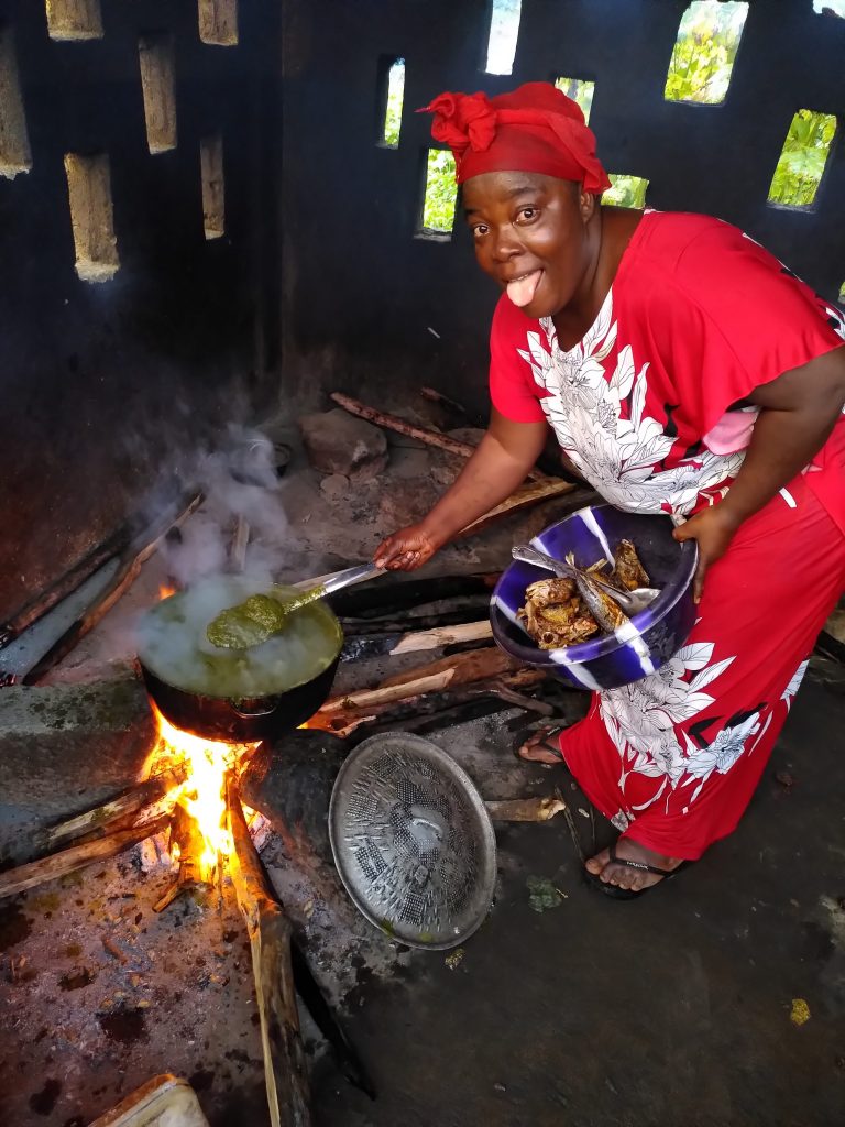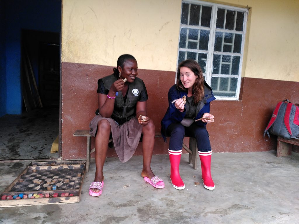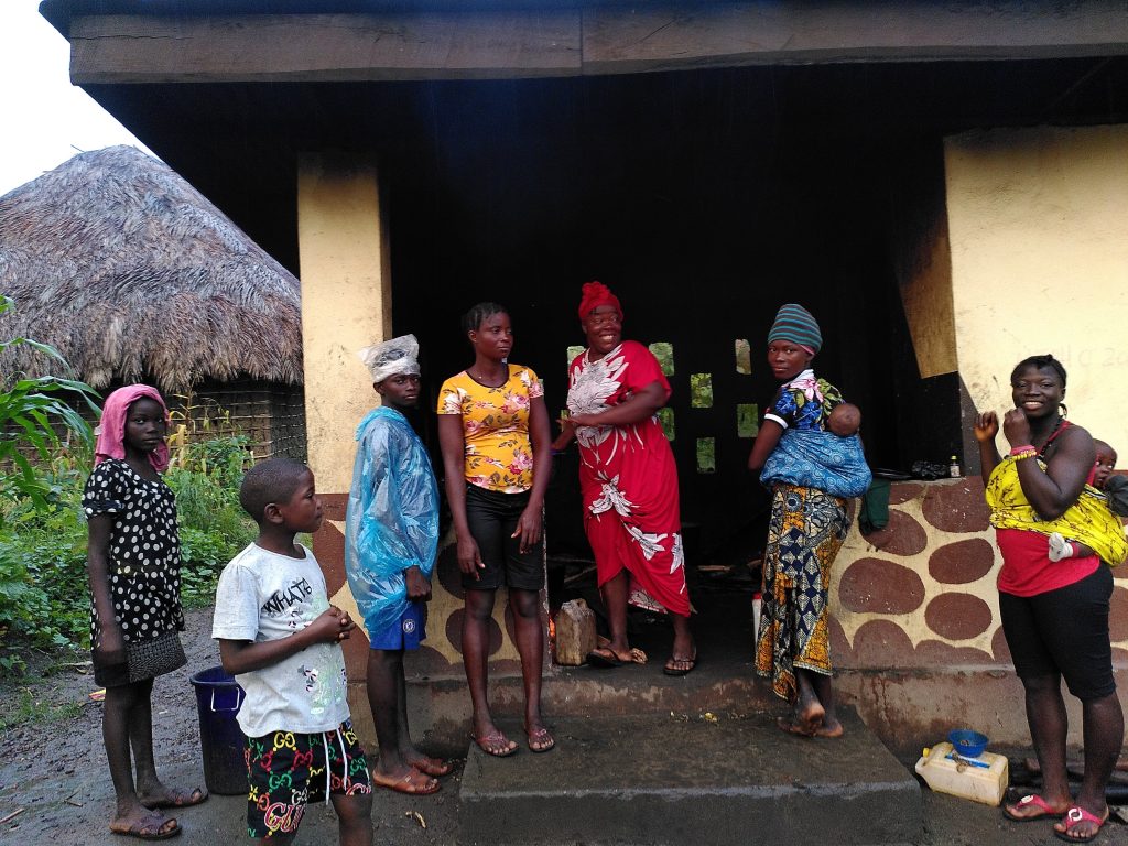 Und weil wir nicht von Luft und Regenwasser leben, gab es in jedem Dorf auch etwas zu Essen. Es wurde für alle gekocht. Und zu unserer großen Freude in jedem Dorf das gleiche. Das heißt, für uns gab es eine Woche lang Reis mit Casava leave. Muss man auch mögen… Meine Kollegin hatte nach drei Tagen schon genug und hat immer versucht, Essensalternativen mitzunehmen, wenn wir zwischendrin mal in der Stadt waren 😊