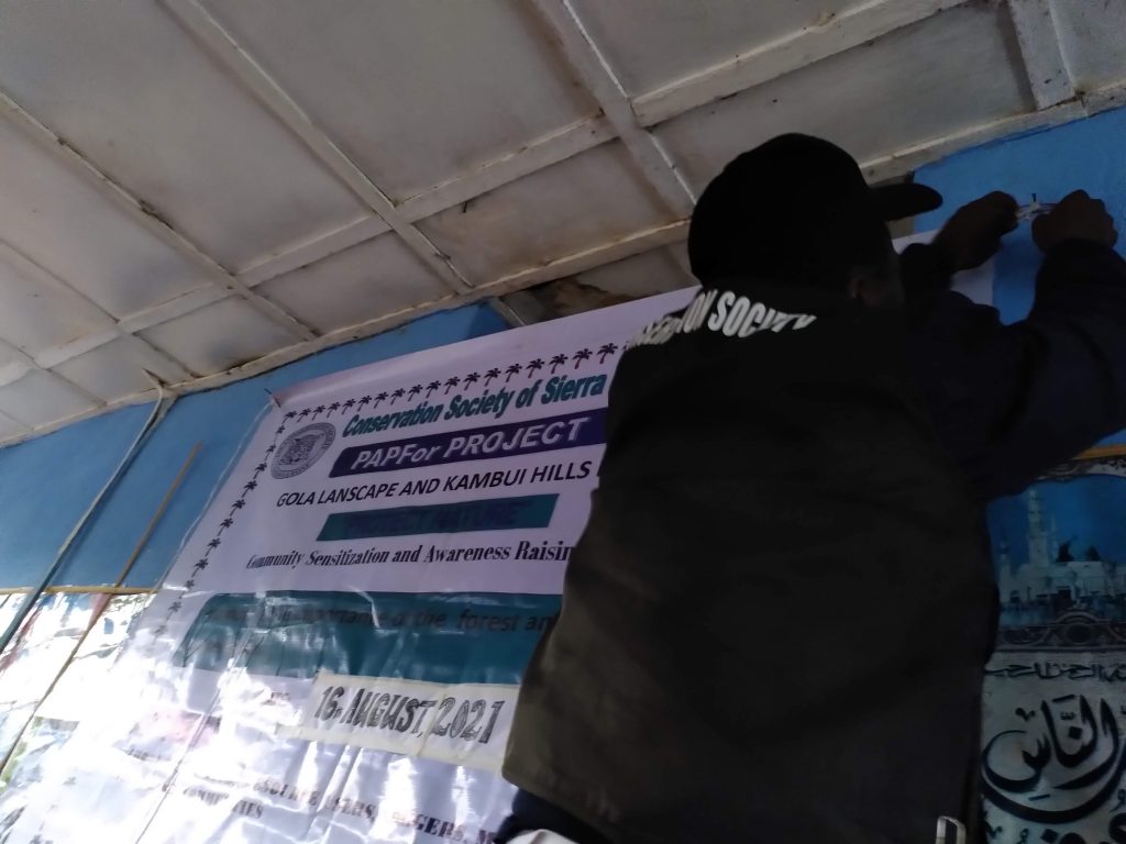 Gemeinsam mit meiner Kollegin Mariama und unserem Fahrer Sinneh sind wir zunächst am Sonntag nach Kenema gefahren. Ihr erinnert euch vielleicht – Kenema ist im Süden und ist die größte Stadt in der Nähe des Gola Rainforest Nationalparks. CSSL ist nicht direkt im Gola Nationalpark tätig, sondern in den umliegenden Kambui Hills. Die Kambui Hills waren ehemals dicht bewaldet, doch der Wald ist bedroht, da er immer weiter abgeholzt wird.