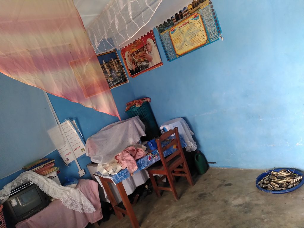 Hier nun noch ein paar Eindrücke aus den Dörfern, mit meinem Lieblingsbild als Start, dem schönsten Moskitonetz ever und Fotos unserer einen Unterkunft sowie der Schulküche. Die Lehrkräfte waren nicht da, weil gerade Ferien sind, so dass wir in den Häusern der Lehrer übernachteten. Achso, und einen Hahn hab ich natürlich auch geschenkt bekommen, genauso wie einen superschönen Hut…