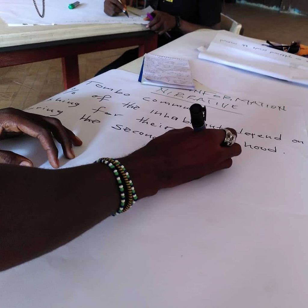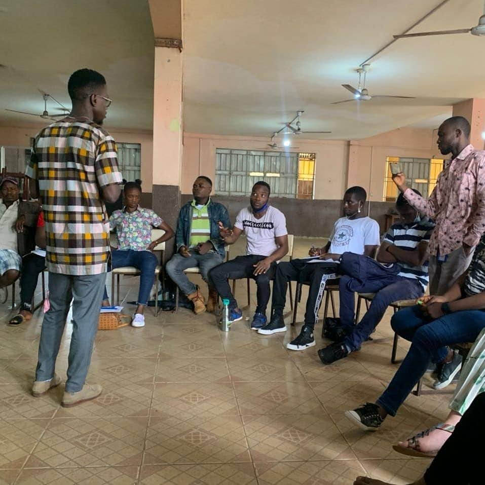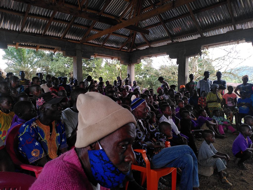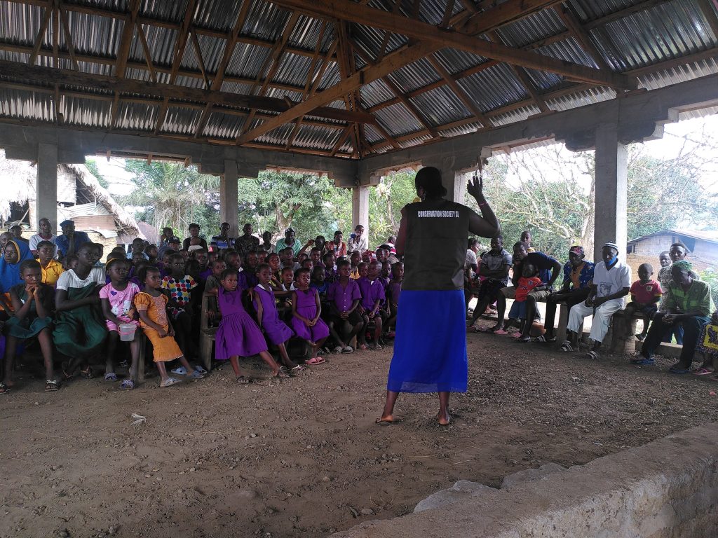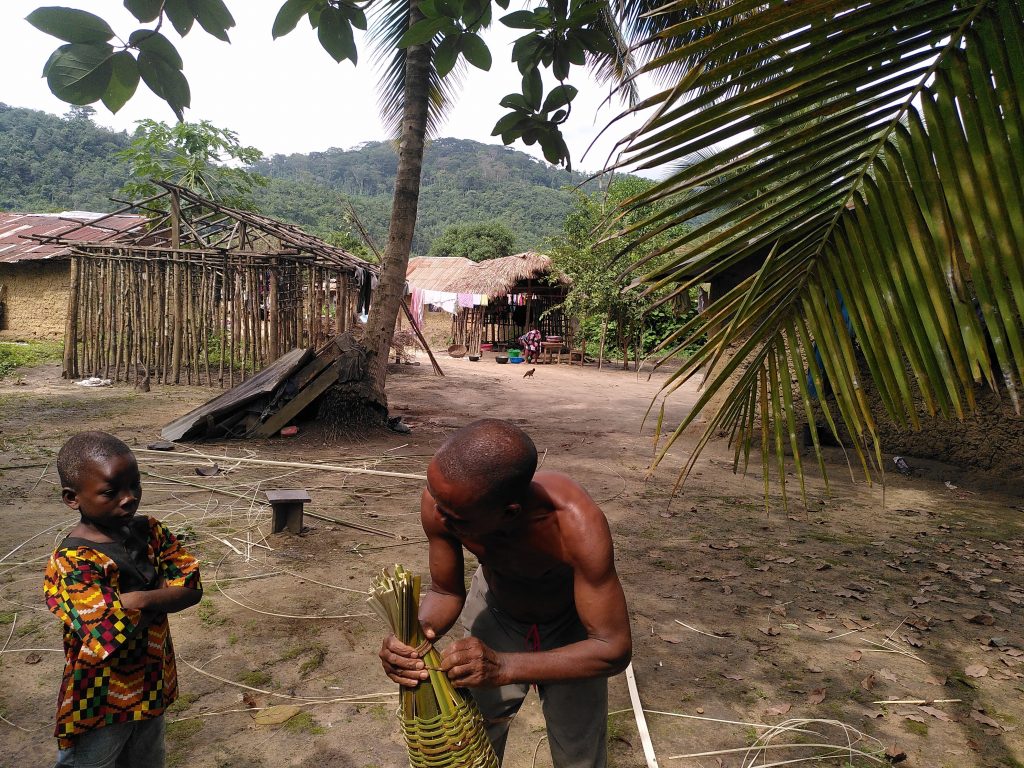 Während der Tanzsessions haben sich normalerweise immer mehr Bänke eingefunden, teilweise auf fleißigen Köpfen aus der lokalen Schule herbeigetragen oder aus verschiedenen Haushalten herbeigebracht. Klein und Groß, Jung und Alt haben sich nach und nach eingefunden, so dass mit der Begrüßung und der Vorstellung der wichtigsten Personen aus dem Dorf begonnen werden konnte. Nach diesem wichtigen Punkt, begannen unsere Reden. Ich habe nicht alles verstanden, da die Menschen in der Gegend Mende sprechen und ich außer ein paar Begrüßungsfloskeln nichts verstehe. Aber ich weiß natürlich, dass meine Kolleginnen und Kollegen in ihren Reden über die Bedeutung des Waldes gesprochen haben, über die benefits, die der Wald bietet, über die fünf Dinge, die man nicht im Naturschutzgebiet machen darf. Es wurde erklärt, welche Art von Fischerei möglich ist, wie die Pflanzen genutzt werden dürfen und was die Folgen vom Waldrückgang sein werden.