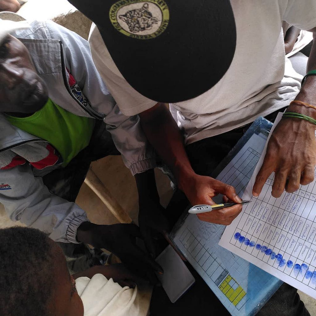 Auf dem einen Bild seht ihr die Anwesenheitsliste. Da viele Erwachsende nicht schreiben können, gilt der Daumenabdruck als Unterschrift.