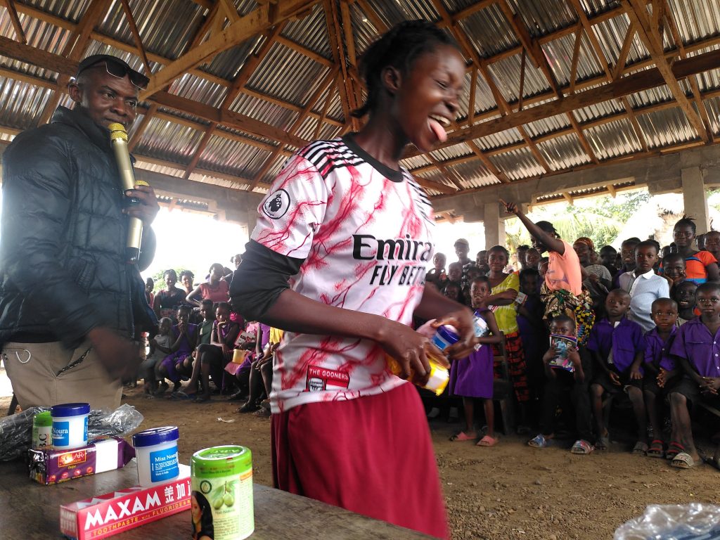 Trotz allem waren die Quizze immer ein großer Erfolg und ein großer Spaß für alle. Besonders in dem einen Dorf, in dem die Kinder sich gegenseitig Wörter zum Buchstabieren vorgegeben haben. Und dann kamen Sachen wie „Spell for me: hippopotamus“ oder „Spell for me: Environment“. Nicht ganz easy, wie ich finde. Anderen Ortes hingegen, haben wir jedes Kind CUP buchstabieren lassen, damit jede und jeder ein Heft und einen Stift abbekommen konnte. Ich war etwas neidisch auf die coolen MARVEL Hefte. Ich muss mal schauen, ob ich die hier in Freetown irgendwo finde…
