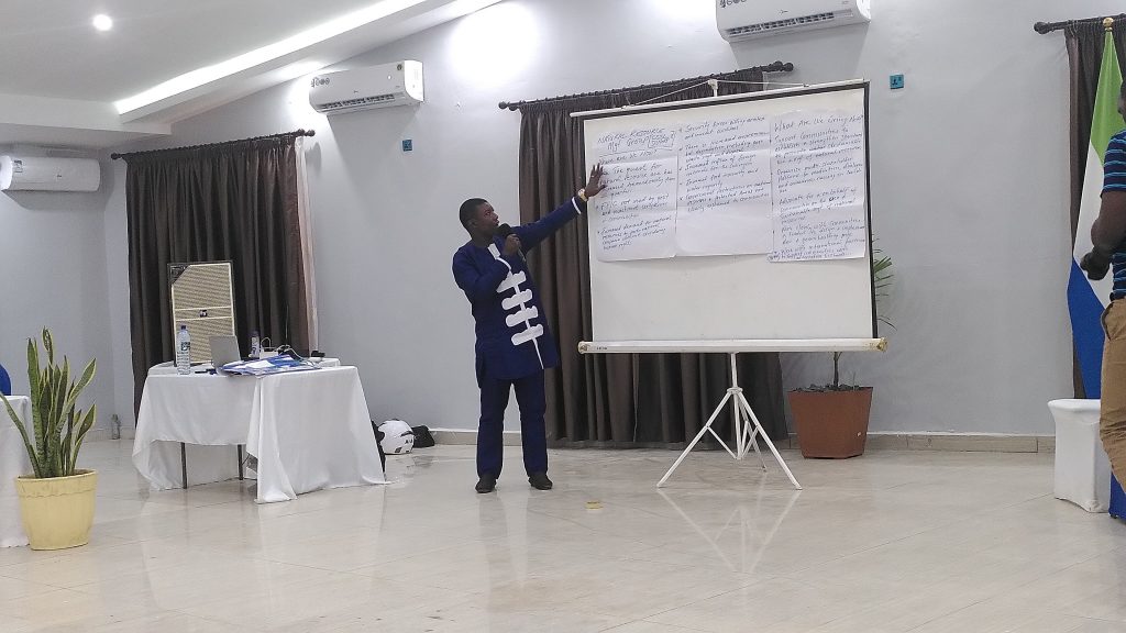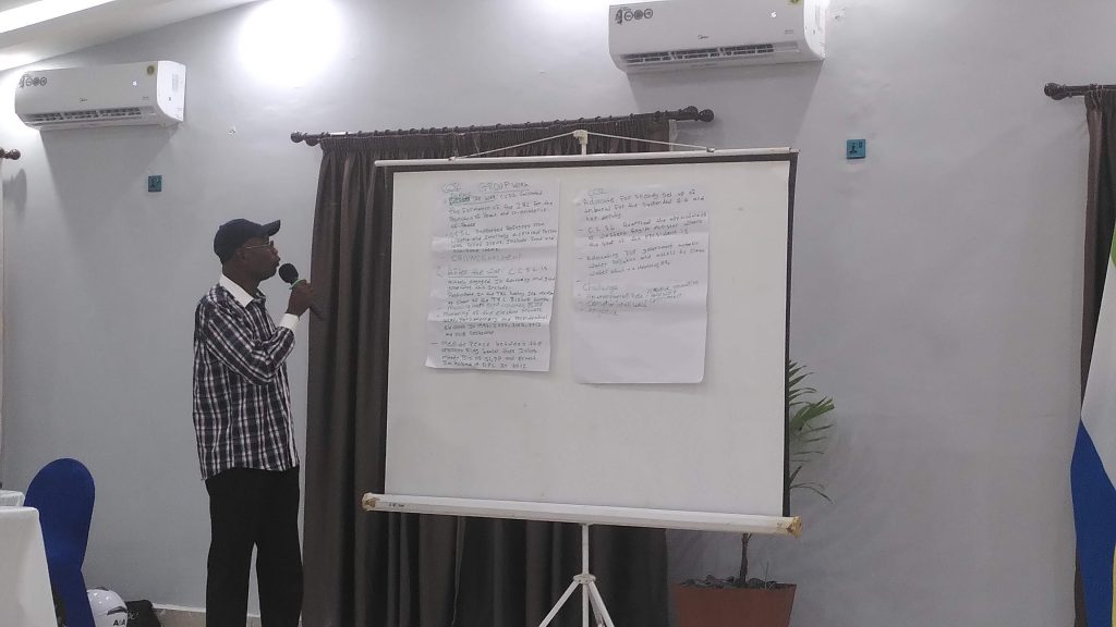 Nach der offenen Diskussionsrunde haben wir uns in thematischen Gruppen zusammengesetzt und reflektiert, was wir als CPS-Netzwerkpartner gemacht haben, um den Frieden zu stabilisieren, wo wir die Herausforderungen für die Zukunft sehen und wie wir ihnen begegnen wollen. Für uns als CSSL geht es dabei hauptsächlich um Land Use und die Nutzung der Bodenschätze und natürlichen Ressourcen des Landes. Wir versuchen zum Beispiel zwischen den Communities und Regierungsorganen zu vermitteln, den Communities alternative Einkommensmöglichkeiten aufzuzeigen und in diesem Bereich für mehr Transparenz und Gerechtigkeit zu sorgen.