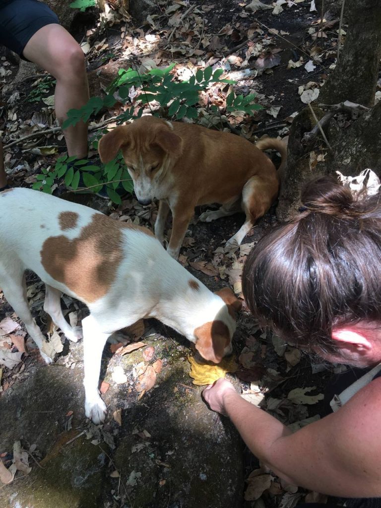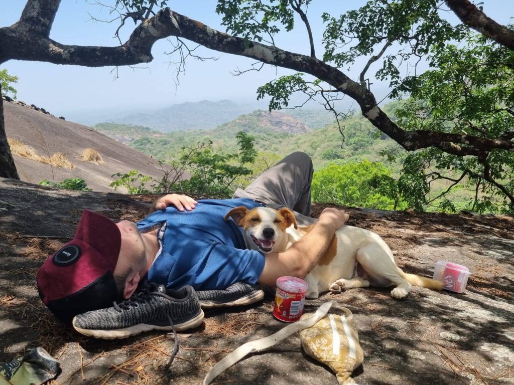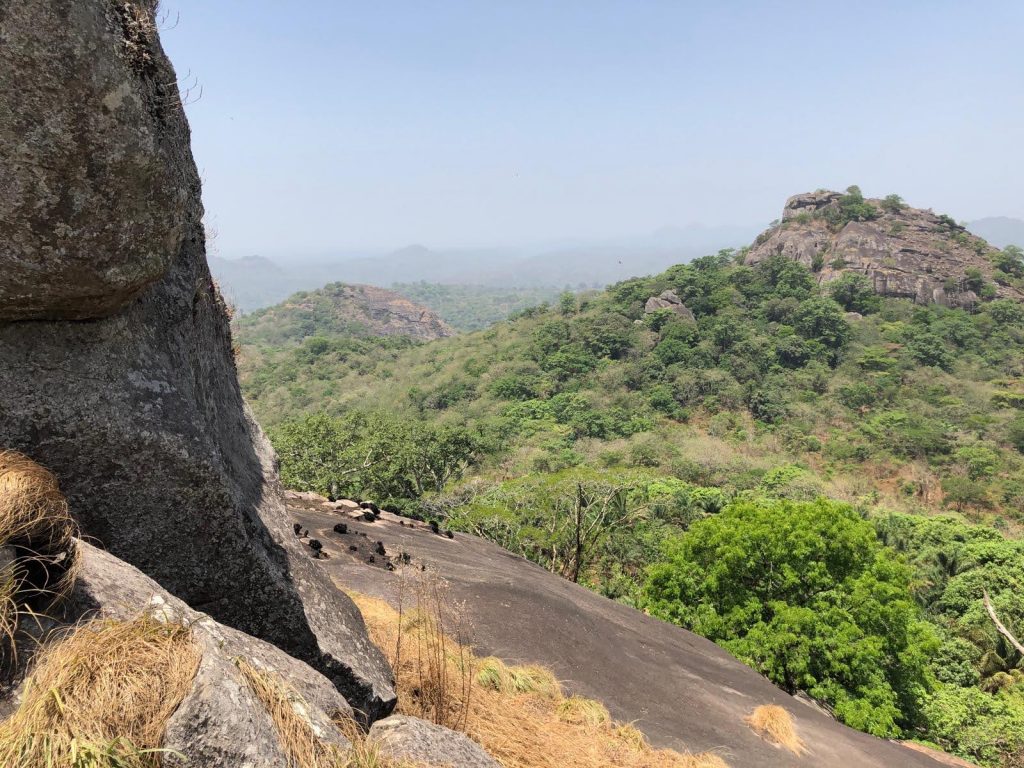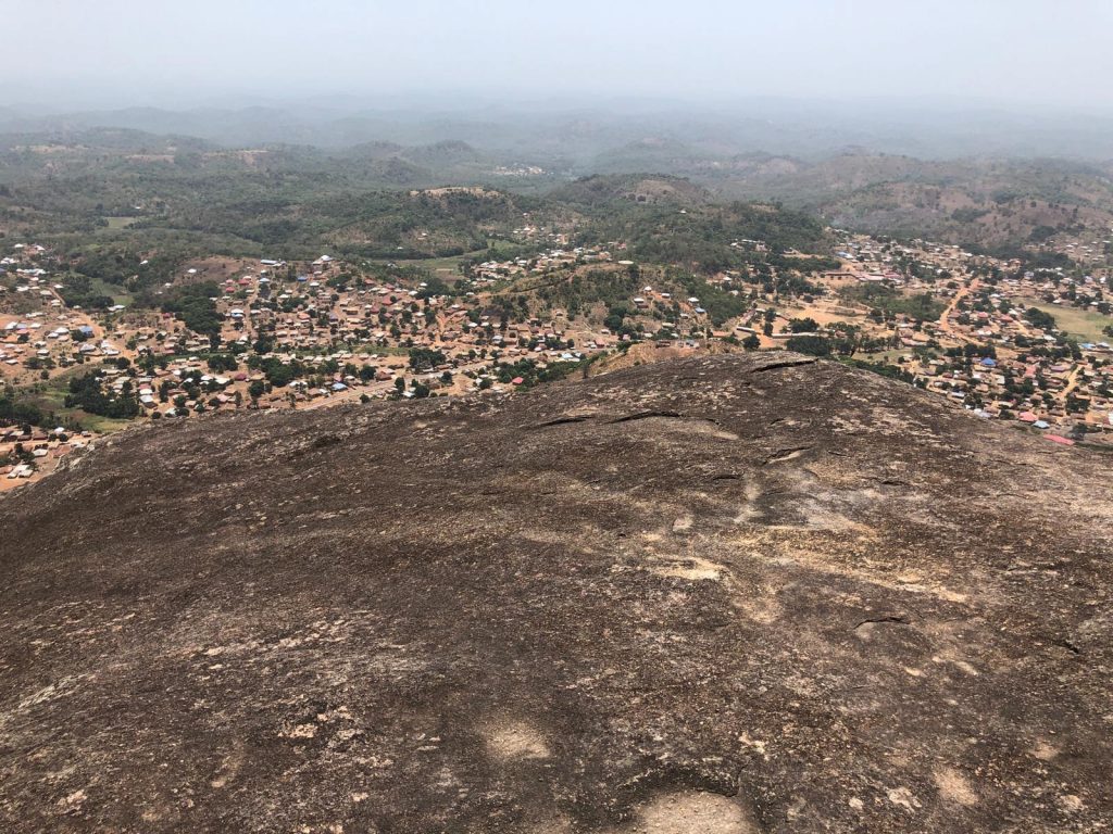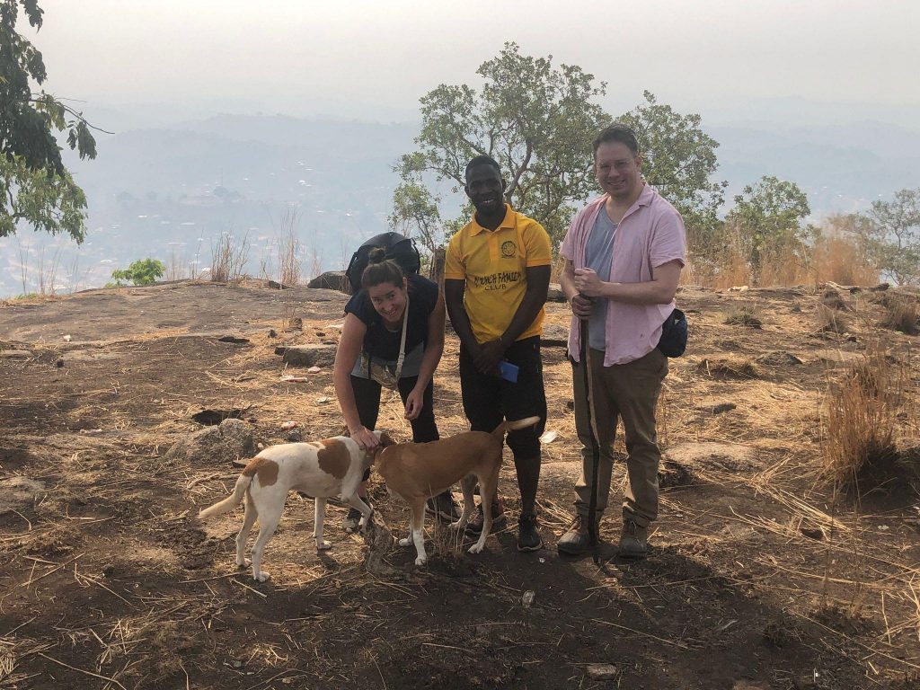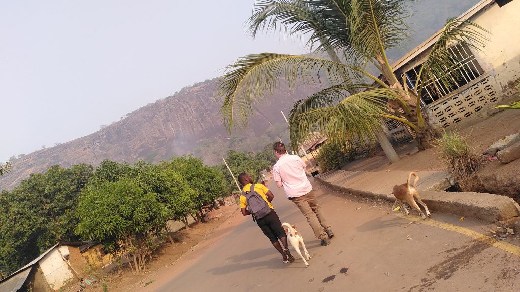 In den nächsten Tagen haben wir zwei Ausflüge auf die Wara-Wara Mountains gemacht. Wobei wir bei dem ersten am Karsamstag, ziemlich viel über Stock-und-Stein den Berg hinaufgeklettert sind, weil irgendwo der Weg auf einmal nicht mehr sichtbar war. Ich mag solche Abenteuer ja. Am Ende wurden wir belohnt von einem unglaublichen Ausblick vom obersten Felsen, um den die Vögel ihre Kreise zogen, mit einem Weitblick über Kabala und die umliegenden Hügelketten. Ich wusste fast schon gar nicht mehr, wie sehr es mir guttut einen Berg zu besteigen, und sei er auch noch so klein. Begleitet wurden wir von Toast und Butter – zwei Hunde aus dem Hill View Guesthouse. Butter hat uns noch vor dem Gipfel verlassen. Er ist mit einer anderen Wandergruppe, die wir unterwegs getroffen hatten, den Berg hinab. Aber Toast hat uns treu bis ganz nach oben begleitet. Da haben wir natürlich Wasser und Kekse mit ihm geteilt. Versteht sich ja von selbst.