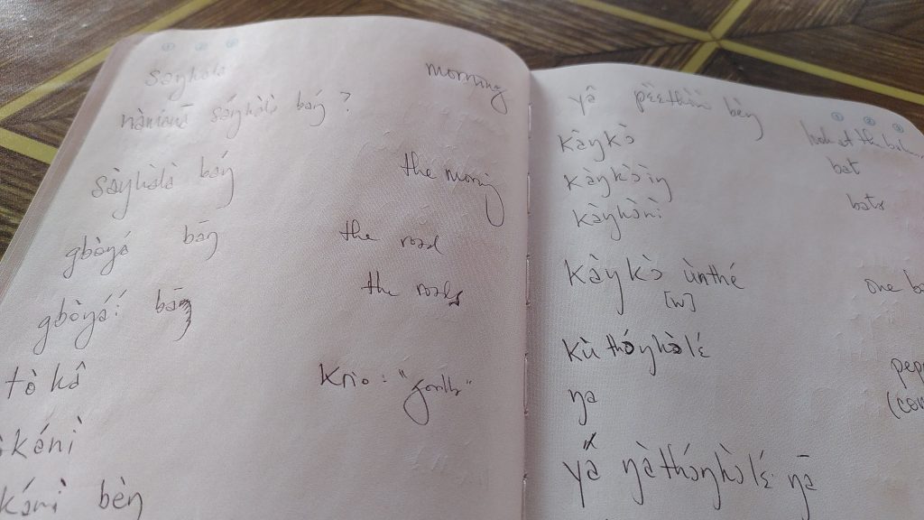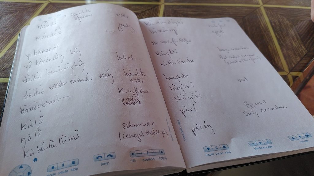 Ein weiteres Highlight war die Bekanntschaft von Nik, einem Sprachwissenschaftler, der in Berlin arbeitet, ursprünglich aus den USA ist und in Kabala für vier Wochen die Sprache der Limba dokumentiert. Da ging Tina und mir das Herz auf. Jemanden zu treffen, der am Tisch sitzt und das phonetische Alphabet in seinen Notizen verwendet. Wir hatten im Studium auch das phonetische Alphabet gelernt, deshalb war es echt spannend nun mit einem „echten“ Sprachforscher zu sprechen.