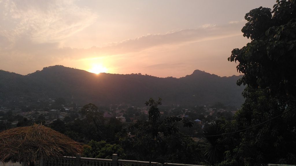 Die Limba sind eine Sprachgruppe im Norden Sierra Leones, in der Gegend von Kabala. Dort habe ich das lange Osterwochenende verbracht. Ich war einmal letztes Jahr im Juni oder Juli in Kabala, um die Kollegen und die Kollegin dort kennenzulernen. Wir haben in Kabala ein kleines Büro mit einem Team von fünf Personen und haben dort das Projekt am Lake Sonfon. Mit Sicherheit erinnert ihr euch sehr gut daran. Damals schon fand ich Kabala und den Weg dorthin wunderschön. Hügelig, Berge und der Blick auf die Wara-Wara Mountains. Tina und ich wollten eigentlich über Sylvester nach Kabala, aber dann hat uns Covid einen Strich durch die Rechnung gemacht, deshalb ging es jetzt mit etwas Verspätung eben übers lange Osterwochenende nach Kabala.