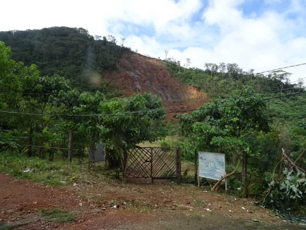 Wir wollten anlässlich des fünften Jahrestages des Unglücks mit community members, der head woman und Vertretern der NDMA (National Disaster Management Agency) einen kleinen Fernsehclip drehen, um einerseits an die Opfer von damals zu erinnern und zugleich die gefährlichen Konsequenzen der Entwaldung zu thematisieren. Ich bin schon öfter an der Stelle mit dem mudslide vorbeigefahren. Man sieht es wie ein Mahnmal der Natur vom Highway aus. Dieses Mal sind wir direkt an den Fuß des Hügels, der abgerutscht ist, direkt an den Rand der red zone. Am Tag bevor wir mit unserem Fernsehteam nach Mortomeh kamen, hat sich ein Riss am Boden aufgetan. Er läuft mehrere hundert Meter in der yellow zone durch Häuser, über Wege den Hügel entlang. Es ist sehr wahrscheinlich, dass es, wenn es so weiterregnet, zu neuen Erdrutschen kommen wird.