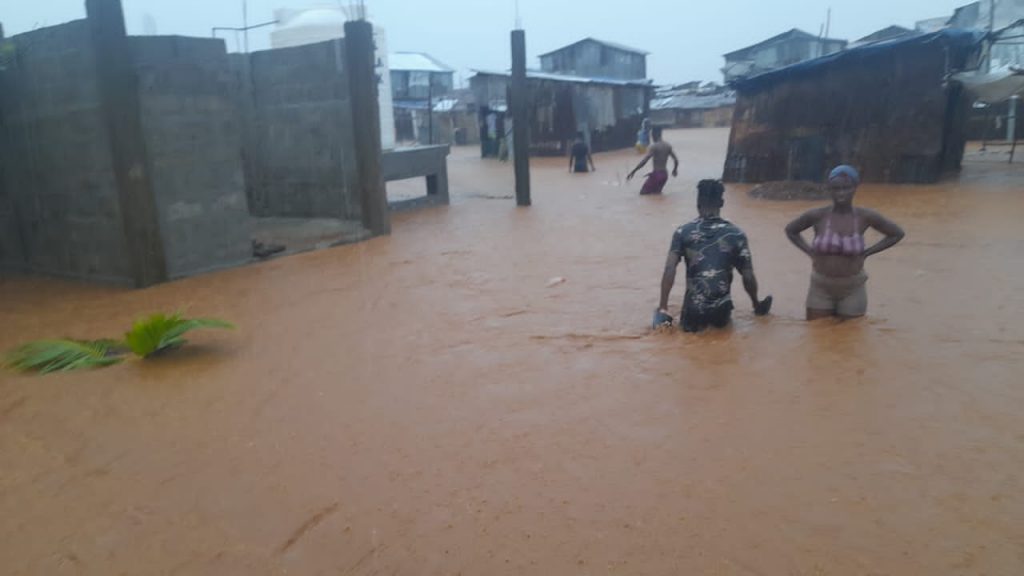 Der Regen hatte mich schon direkt nach meiner Ankunft in Empfang genommen. Als wir während des Curfews zuhause saßen, haben wir noch gescherzt, dass eh niemand rausgehen würde, weil es so stark regnete. Am Montag nach meiner Ankunft sind wir aber trotzdem in unser asiatisches Karaoke-Restaurant, weil ein Freund von mir Geburtstag hatte. Wir waren die einzigen Gäste, kein Wunder bei dem Regen. Freddy, der noch unterwegs war, hat aus dem Keke Videos geschickt. Er steckte fest, weil eine der großen Straßen in Freetown vollständig überschwemmt war. Ich zeige euch hier ein paar Videos aus den sozialen Medien. Quelle und Ursprung unbekannt (bis auf Freddys Video), da mehrfach geteilt und weitergeleitet. Aber so bekommt ihr einen kleinen Eindruck davon, was es heißt, wenn es in den Whatsapp-Gruppen auf einmal heißt „Weiß jemand, ob man gerade die Wilkinson entlang kommt?“