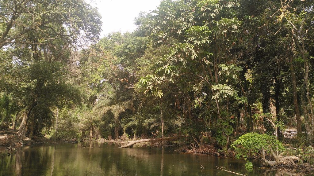In dem Dorf haben wir in einem Haus übernachtet, in dem mehrere Zimmer waren. Hinter dem Haus gab es eine überdachte Kochstelle und daneben war ein „Toilettenhäuschen“ mit drei kleinen Kabinen. Zwei Toiletten und eine Dusche. Bei der Dusche war ein Loch im Boden, damit das Wasser gut abfließen kann, bei den Toiletten ist meist noch etwas aufgemauert, so dass man sich gemütlich in der Hocke über das Loch setzen kann. Die Kabinen sind zu einer Seite offen. Die Öffnungen sind mit alten Reissäcken verhangen, die man herunterlassen kann, aber es gibt keine Türe oder so, die man zumachen kann. Auch die Reissäcke verdecken die Öffnungen nicht vollständig. Erst fand ich das voll komisch, da jede Person, die hinter der Kabine vorbeiläuft, mich sehen kann, während ich dusche oder mein Geschäft verrichte. Als ich ein bisschen nachgedacht habe, wurde mir klar, dass es gleichzeitig für mehr Sicherheit für die Frauen sorgt. Erstens ist das Toilettenhäuschen genau neben der Stelle, an der die Frauen kochen. Das heißt, dass eigentlich immer Frauen da sind und mitbekommen, wer da hingeht. Dadurch, dass alles offen ist, kann jeder und jede jederzeit hineinschauen und sehen, was passiert. Damit kann niemand eine Frau bedrängen oder ihr irgendwas antun, während sie am Klo ist oder während sie duscht. Als ich in der Dunkelheit nochmal aufs Klo bin, hat eine Frau sich einfach im Freien geduscht, neben der Kochstelle. Schwarzer Körper sieht man ja nicht in der Dunkelheit. Sie konnte im Freien duschen, direkt neben den anderen Frauen, und war zugleich geschützt. Mir ist da nochmal echt bewusst geworden, wie verletzlich und wie angreifbar die Frauen sind.